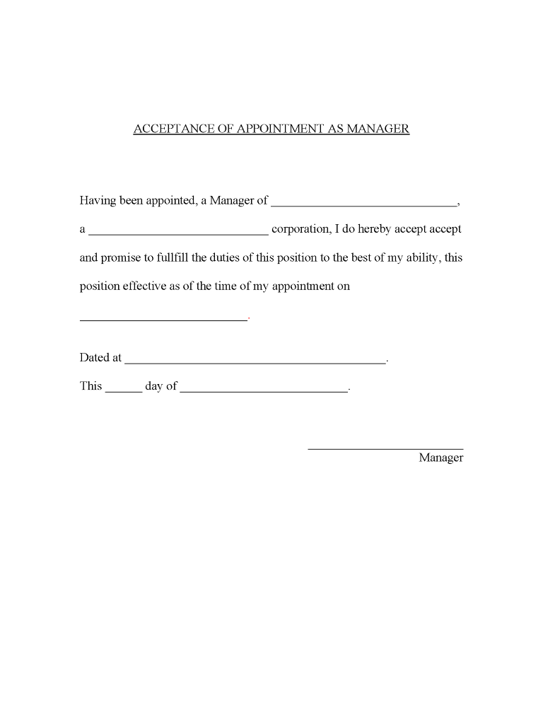 Acceptance of Appointment as Manager Word September 17, 2021Full resolution (768 × 994) ← Previous Next → Acceptance of Appointment as Manager Word Acceptance of Appointment as Manager Word