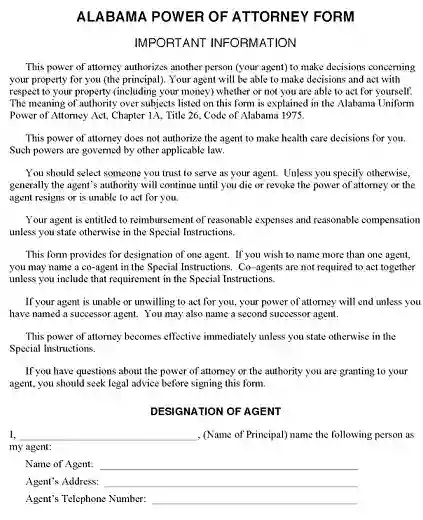Alabama Durable Power of Attorney Form PDF