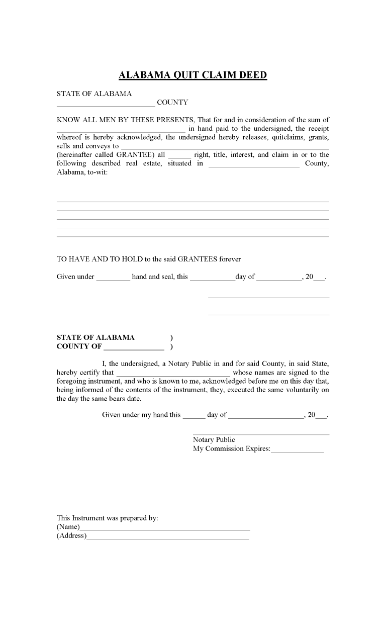 Alabama Quitclaim Deed Word September 28, 2021Full resolution (768 × 1265) ← Previous Next → Alabama Quitclaim Deed Word Alabama Quitclaim Deed Word