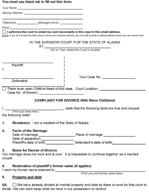 Alaska Divorce Forms 1