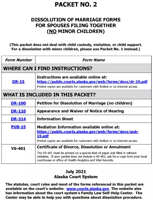 Alaska Divorce Forms Packet 2