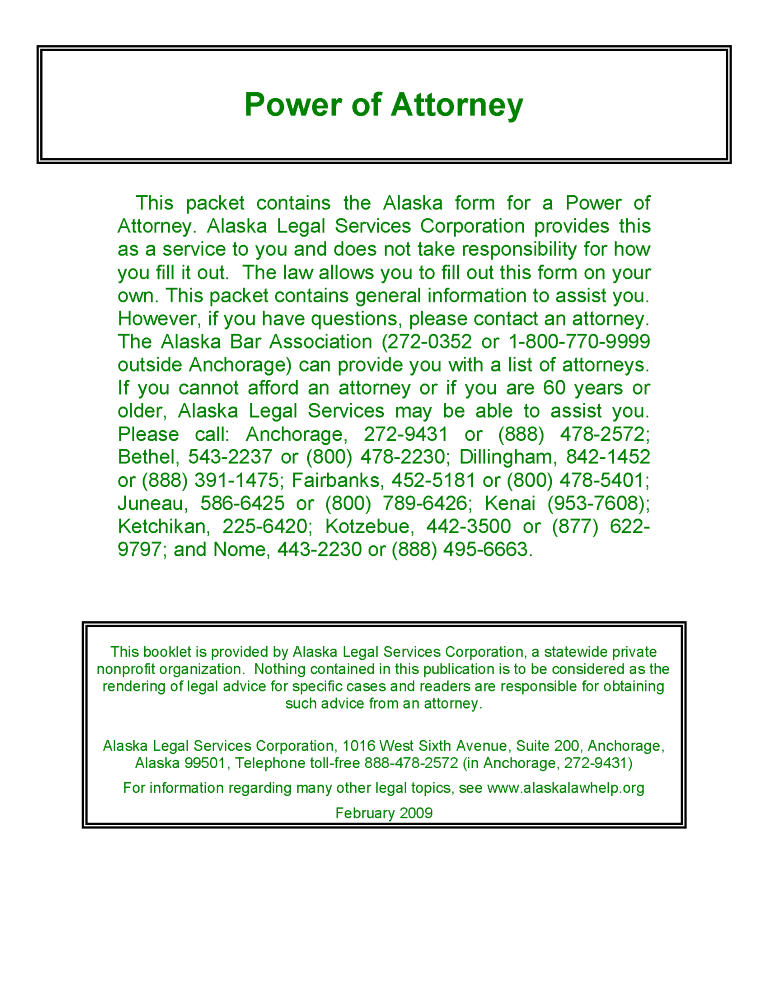 Alaska Durable Power of Attorney Form PDF