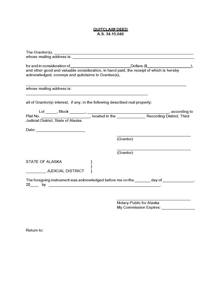 Alaska Quitclaim Deed