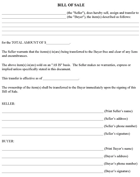 Printable Wyoming Simple Bill of Sale – The simple bill of sale calls for particularly limited related information to finalize. Write in the name, address, and contact number of the current owner as well as the buyer. Provide the items(s) being transferred, the price, and the date of the final sale. The document features the “as is” stipulation showing that the seller takes no legal responsibility for the condition of the item being sold.