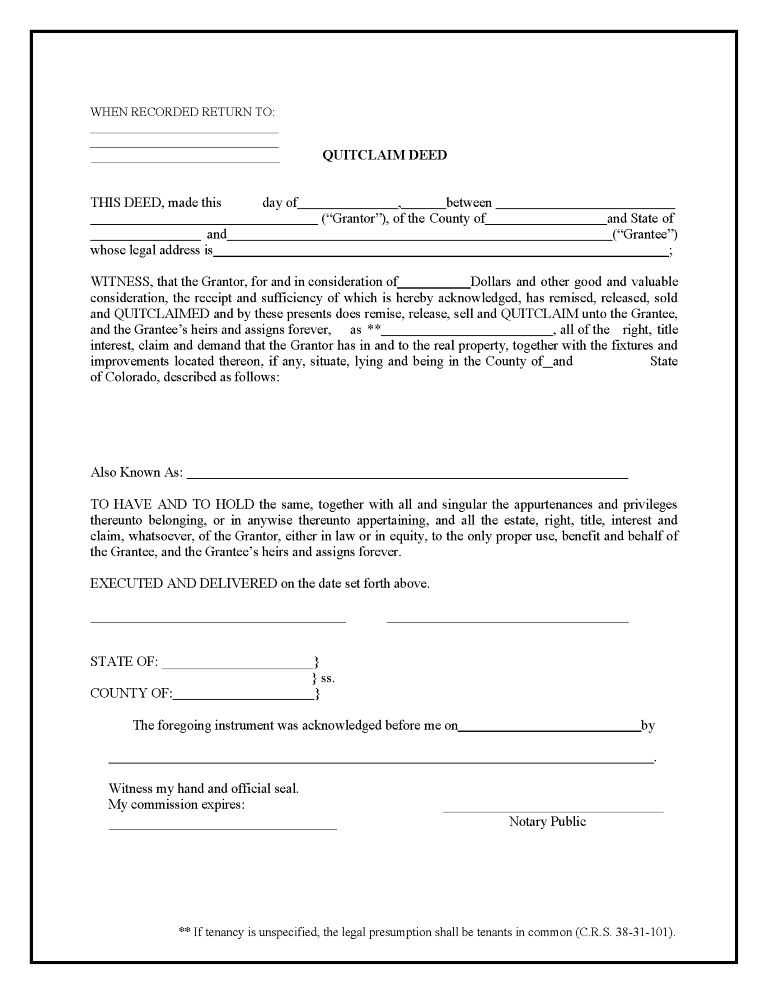 Colorado Quit Claim Deed