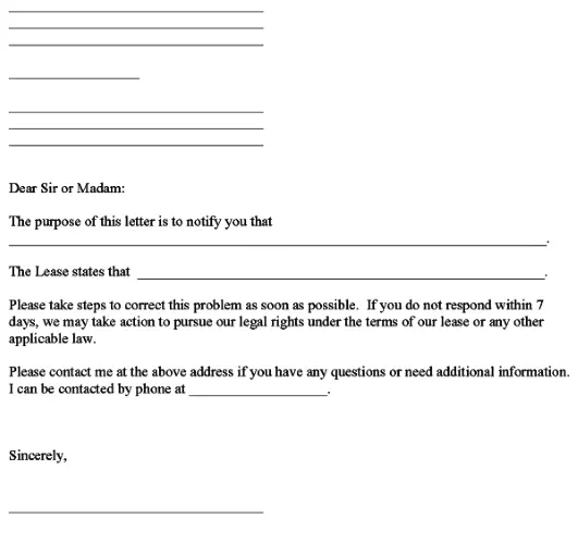 Complaint to Tenant