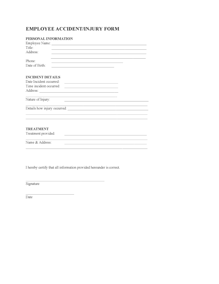Employee Accident or Injury Report Form Fillable PDF
