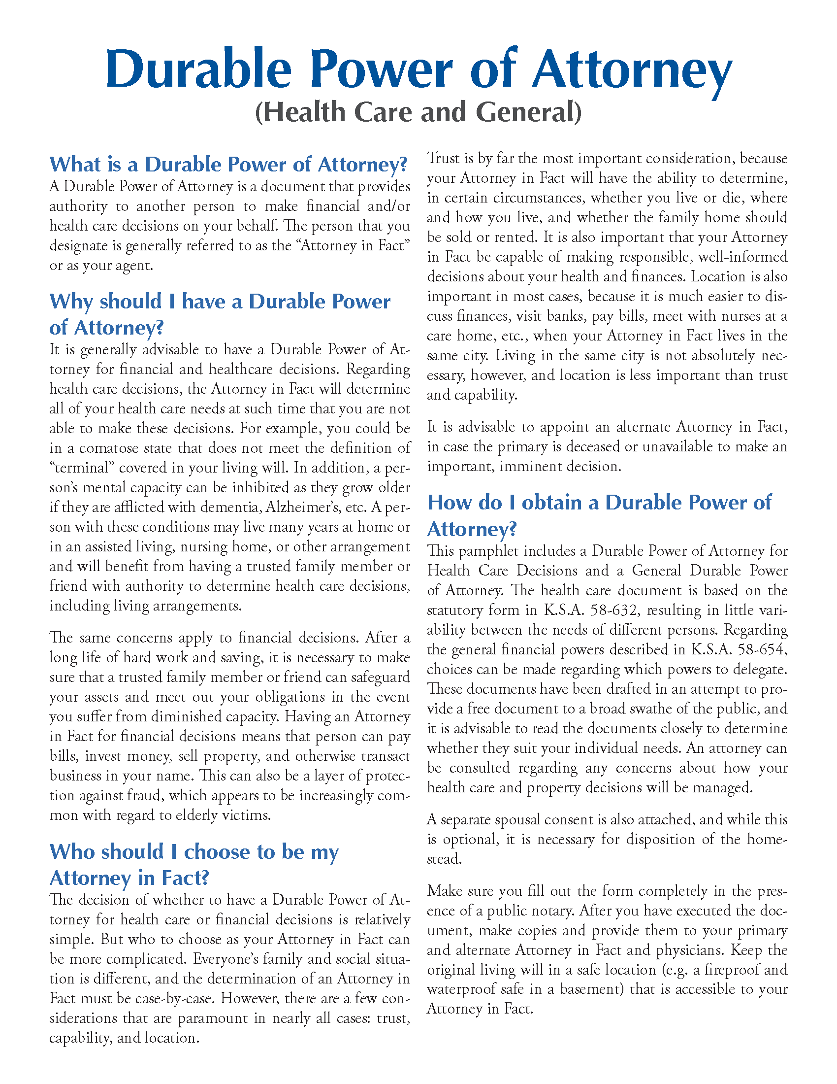 Fillable Kansas Durable Power of Attorney Form