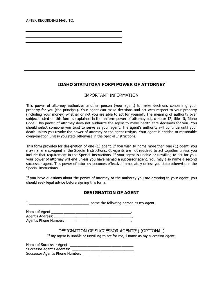Idaho General Power of Attorney Form PDF
