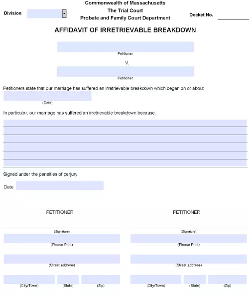 Massachusetts Affidavit of Irretrievable Breakdown PDF