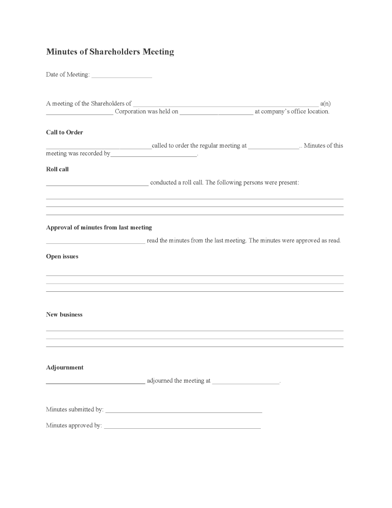 Minutes of Shareholders Meeting Form Fillable PDF September 17, 2021Full resolution (768 × 994) ← Previous Next → Minutes of Shareholders Meeting Form Fillable PDF Minutes of Shareholders Meeting Form Fillable PDF