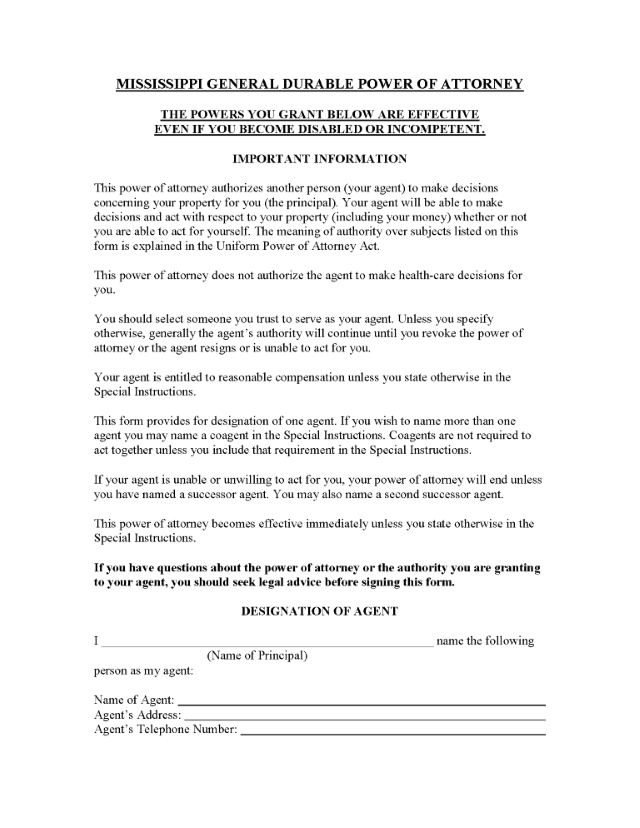 Mississippi Durable Power of Attorney Form Word