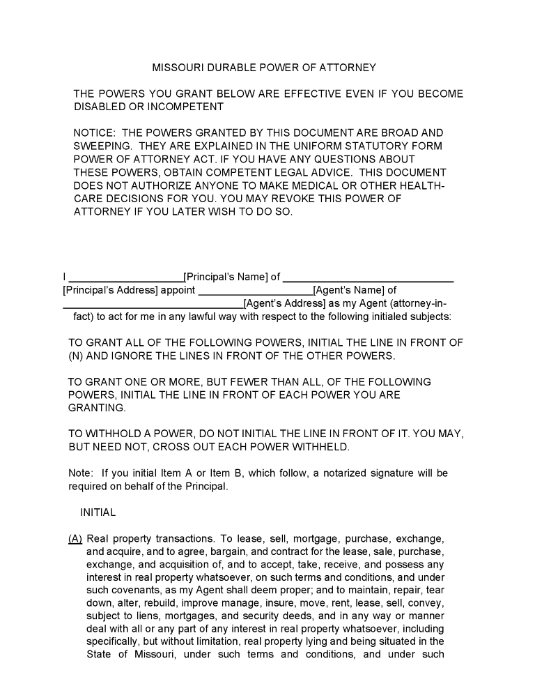 Missouri Durable Power of Attorney Form PDF