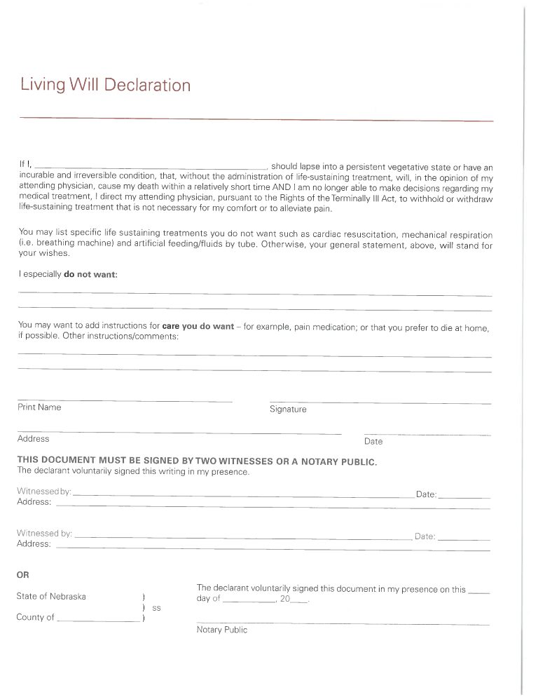 Nebraska Blank Printable Living Will Word September 30, 2021Full resolution (768 × 994) ← Previous Next → Nebraska Blank Printable Living Will Word Nebraska Blank Printable Living Will Word