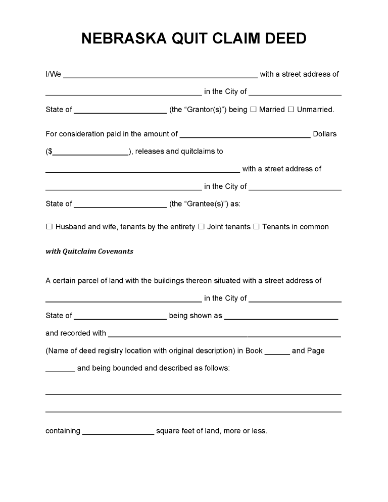 Nebraska Quit Claim Deed