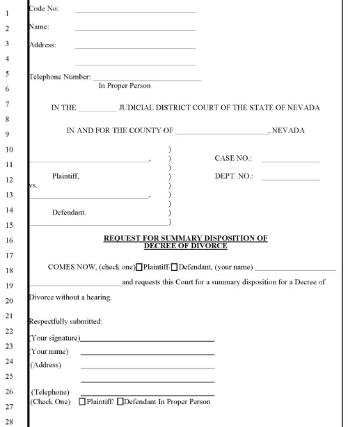 Nevada Request For Summary Disposition For Decree of Divorce PDF June 5, 2022Full resolution (500 × 613) ← Previous Next → Nevada Request For Summary Disposition For Decree of Divorce PDF Nevada Request For Summary Disposition For Decree of Divorce PDF