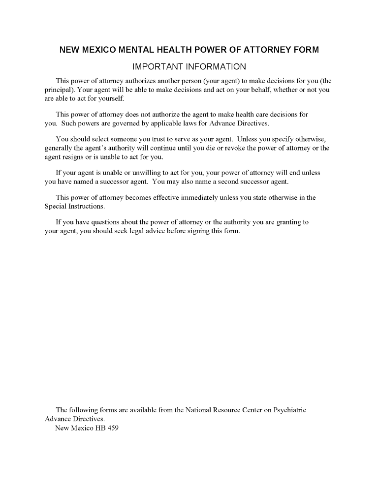 New Mexico Mental Health Power of Attorney PDF September 28, 2021Full resolution (768 × 994) ← Previous Next → New Mexico Mental Health Power of Attorney PDF New Mexico Mental Health Power of Attorney PDF
