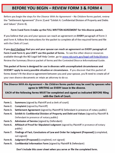 North Dakota Divorce With An Agreement No Children Packet PDF June 5, 2022Full resolution (487 × 647) ← Previous Next → North Dakota Divorce With An Agreement No Children Packet PDF North Dakota Divorce With An Agreement No Children Packet PDF