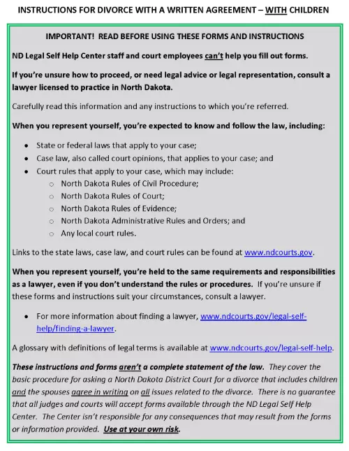 North Dakota Divorce With An Agreement With Children Instructions PDF