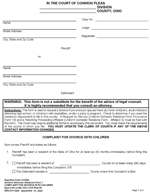 Ohio Complaint For Divorce With Children PDF