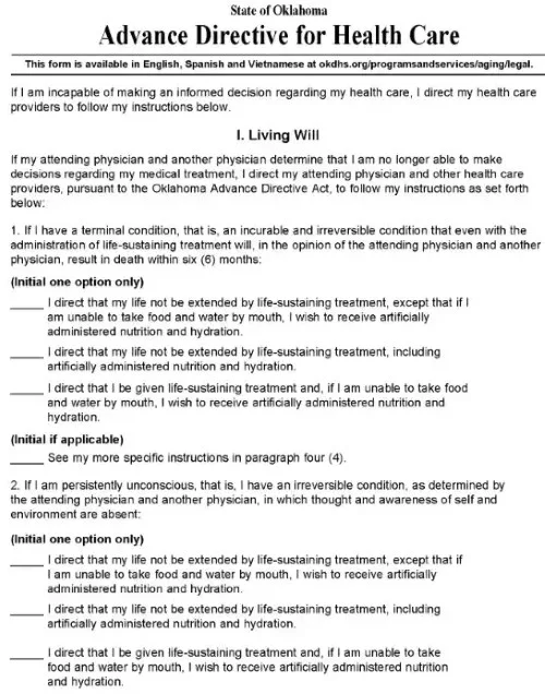 Oklahoma Advance Healthcare Directive PDF May 31, 2022Full resolution (500 × 636) ← Previous Next → Oklahoma Advance Healthcare Directive PDF Oklahoma Advance Healthcare Directive PDF