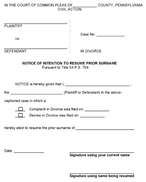 Pennsylvania Notice of Intention To Resume Prior Surname PDF June 5, 2022Full resolution (500 × 623) ← Previous Next → Pennsylvania Notice of Intention To Resume Prior Surname PDF Pennsylvania Notice of Intention To Resume Prior Surname PDF