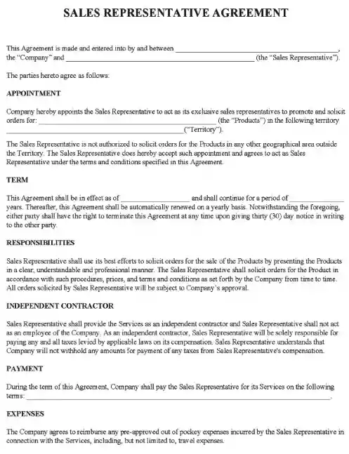 Sales Representative Agreement Form PDF
