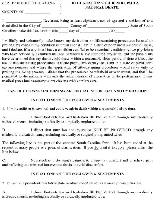 South Carolina Advance Healthcare Directive PDF