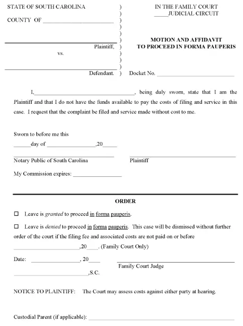 South Carolina Motion and Affidavit to Proceed In Forma Pauperis PDF June 5, 2022Full resolution (483 × 647) ← Previous Next → South Carolina Motion and Affidavit to Proceed In Forma Pauperis PDF South Carolina Motion and Affidavit to Proceed In Forma Pauperis PDF