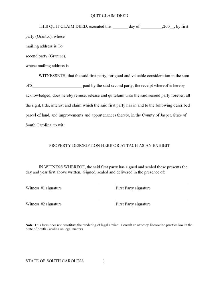 South Carolina Quitclaim Deed Word