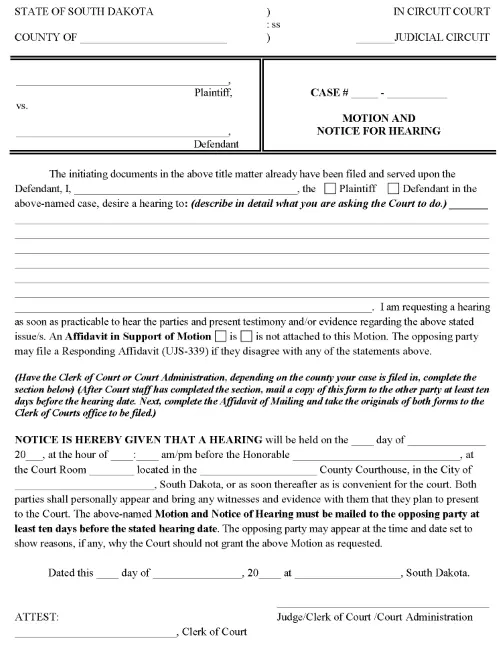 South Dakota Divorce Motion and Notice For Hearing PDF