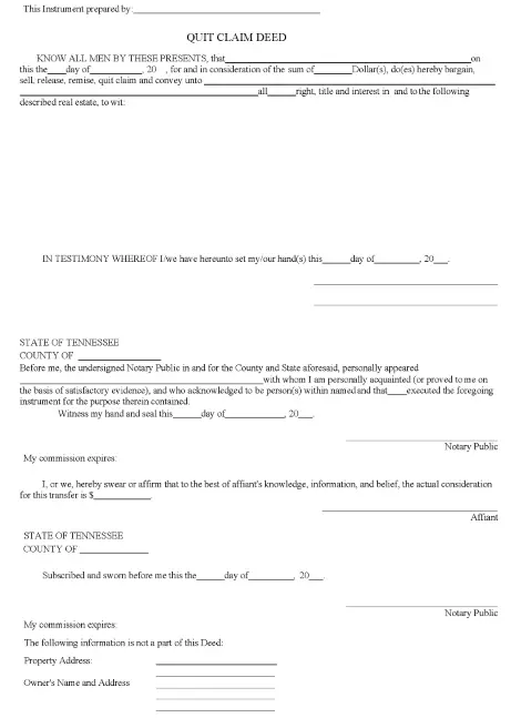 Tennessee Quitclaim Deed Word