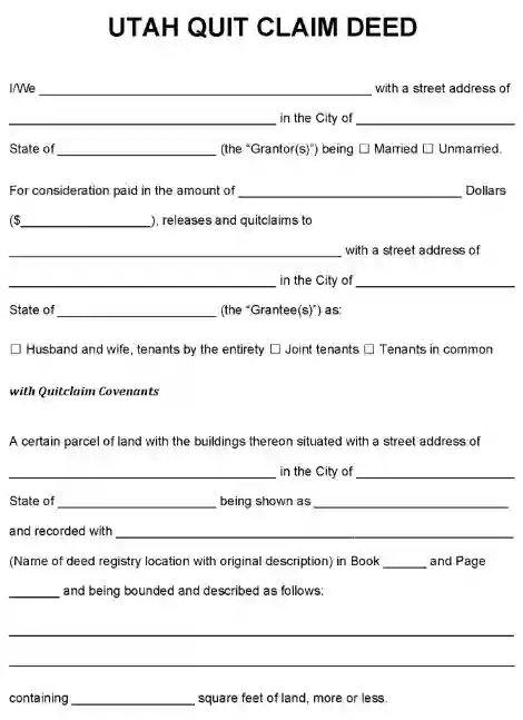 Utah Quit Claim Deed PDF