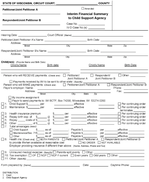 Wisconsin Interim Financial Summary To Child Support Agency PDF