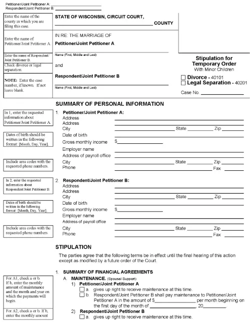 Wisconsin Stipulation For Temporary Order With Minor Children PDF