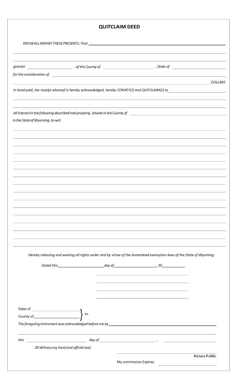 Wyoming Quitclaim Deed Word September 28, 2021Full resolution (768 × 1265) ← Previous Next → Wyoming Quitclaim Deed Word Wyoming Quitclaim Deed Word