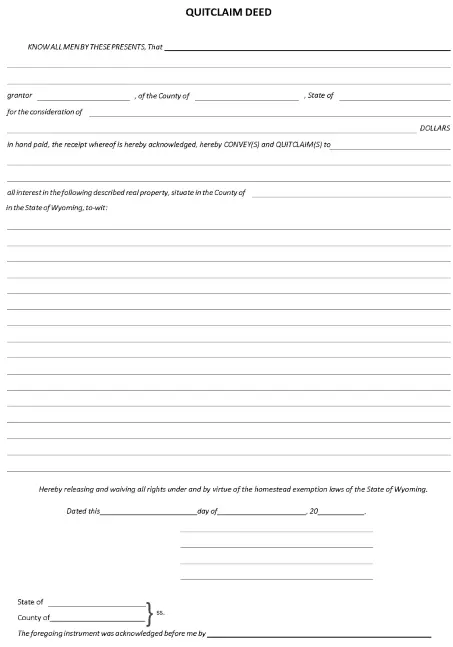 Wyoming Quitclaim Deed Word